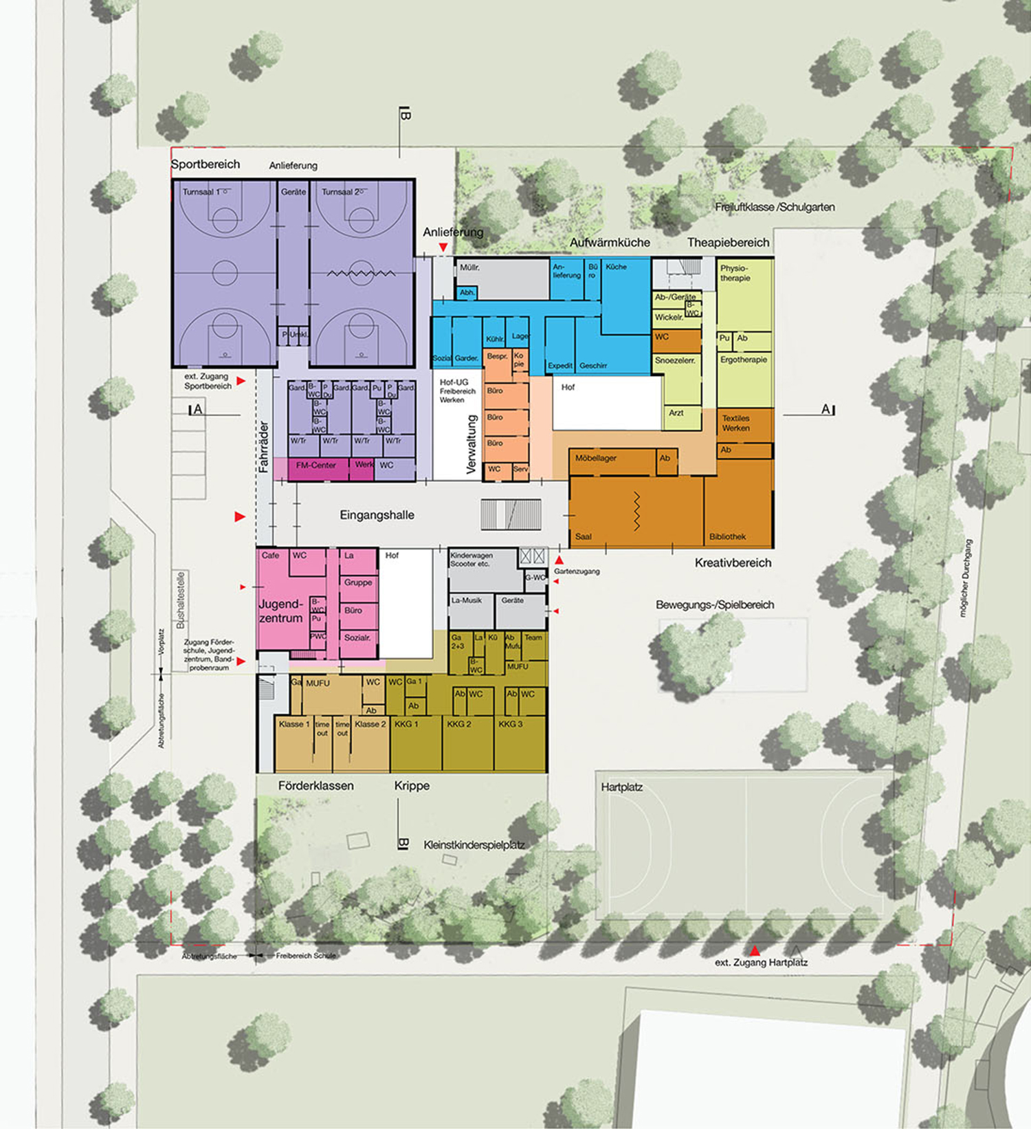 - eine übersichtliche, nutzungsgerechte Situierung der einzelnen Funktionen