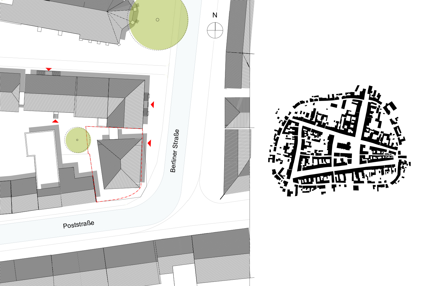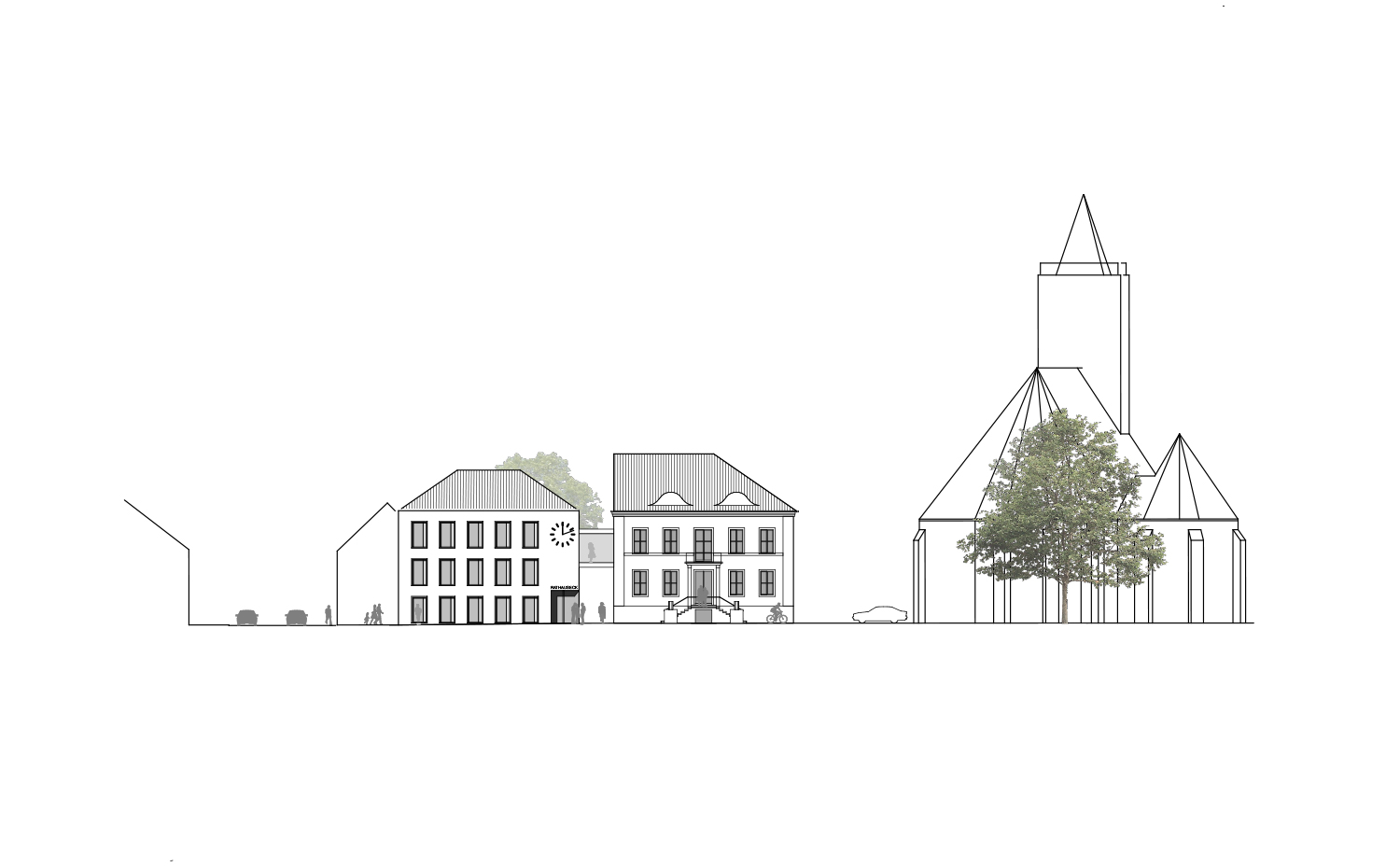 "Die Entwurfsentscheidung, die ergänzenden Nutzungen für das historische Rathaus in Beelitz in einem eigenständigen, solitären, autonomen und vom Rathaus abgetrennten Baukörper zu realisieren, wird vom Preisgericht grundsätzlich als ein wichtiger Beitrag und als eine eigenständige, starke Idee in diesem Wettbewerbsverfahren gewürdigt. Die Nutzungen eines zukünftigen Bürgerbüros, gewissermaßen außerhalb des Rathauses zu platzieren, und mit einem kompakten Gebäude dem Rathaus ein selbstbewusstes Bürgerhaus an die Seite zu stellen, überzeugt. Mit dieser mutigen und klar formulierten Entscheidung geht jedoch auch eine Abkehr von der in Beelitz üblichen und überkommenen Blockrandschließung einher, die im Preisgericht lange und kontrovers diskutiert wird. Zu einer eher kritischen Bewertung des neuen stadträumlichen Konzepts trägt auch die große Volumetrie des Neubaus mit drei aufgehenden Geschossen zuzüglich Dach bei. Ebenso wird die Freistellung der beiden somit fensterlos verbleibenden Brandwände der Nachbargebäude als irritierend und als fehlender Bezug zum heutigen baulichen Bestand kritisiert. Positiv wird die durch die Freistellung des Solitärbaus erzeugte, großzügige und selbstverständliche Anbindung des Hofraumes an die Berliner- und Poststraße bewertet, da dadurch die rückwärtige Bebauung der Poststraße 19 und der barrierefreie Zugang zum Rathaus in einen halböffentlichen Raum mündet."...